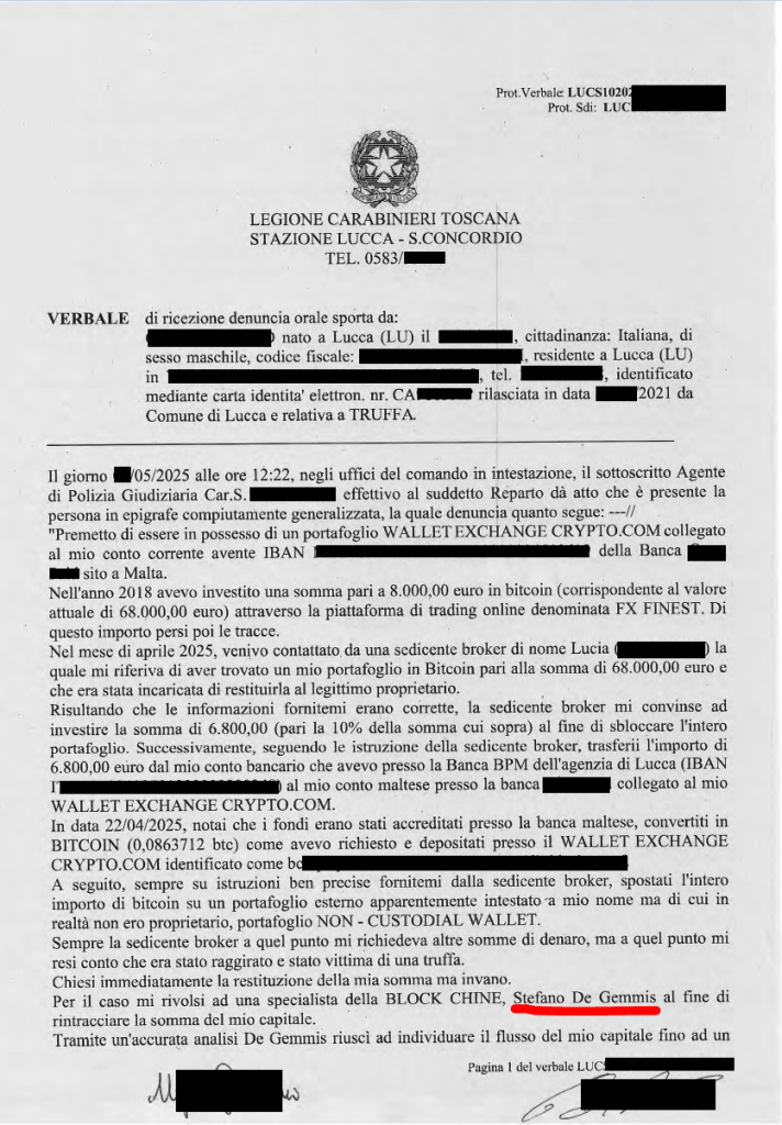 Questo cliente si era fatto convincere e aveva investito e per questo si era rivolto a me in cerca di aiuto. Per sua fortuna aveva capito che si trattava di una truffa in soli 2 giorni, quindi l’analisi della transazioni è stata veloce.
